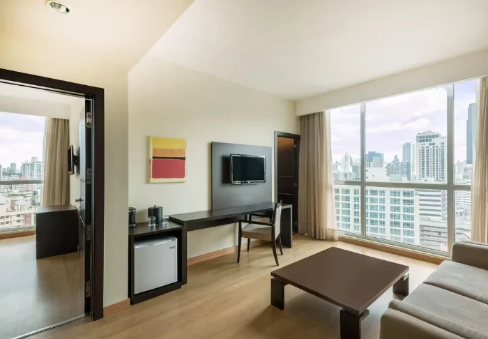 Het hotel beschikt over 92 lichte en moderne kamers, ingericht in een eenvoudige en minimalistische stijl. Alle kamers zijn voorzien van airconditioning, wifi, TV, minibar en faciliteiten om koffie en thee te zetten. Dankzij de grote ramen heeft u een prachtig uitzicht op het levendige stadsleven beneden.