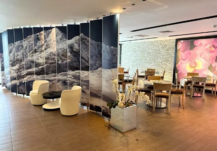 In het restaurant van het hotel kun je de dag beginnen met een ontbijt, dat is inbegrepen. Hier heb je de keuze uit ontbijtgranen, brood, kaas, ham, sap, enz.
