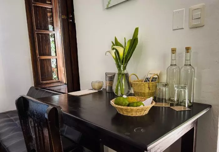 Er is een groot stuk land dat bij het hotel hoort en ze hebben hun eigen café, restaurant, distilleerderij en een grote tuin met exotische bloemen en fruitbomen, die onder andere kolibries aantrekken. Op het aangrenzende perceel runnen ze een biologische boerderij die nog steeds traditionele technieken gebruikt die al eeuwenlang bestaan. Als gast die in het hotel verblijft, kun je de boerderij bezoeken en een interessant inzicht krijgen in de productie ervan.