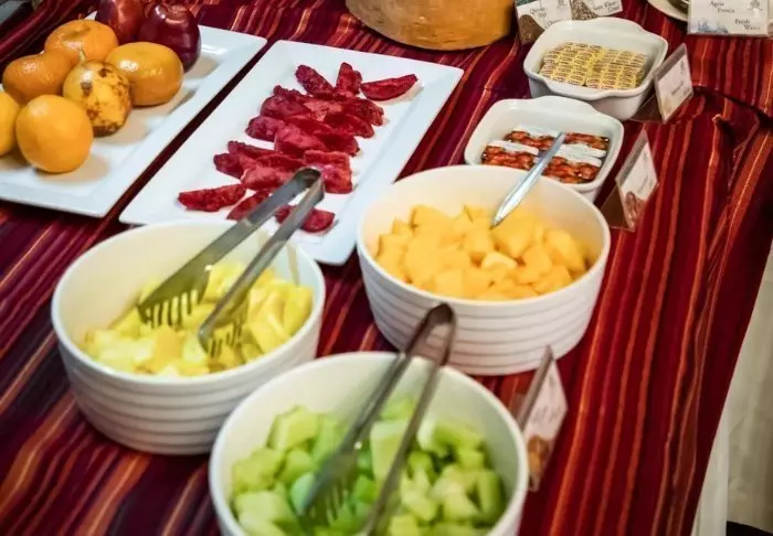Je ontbijt (inbegrepen) wordt geserveerd als buffet in het hotelrestaurant, Taypicamaña, dat uitkijkt over het plein van de stad.