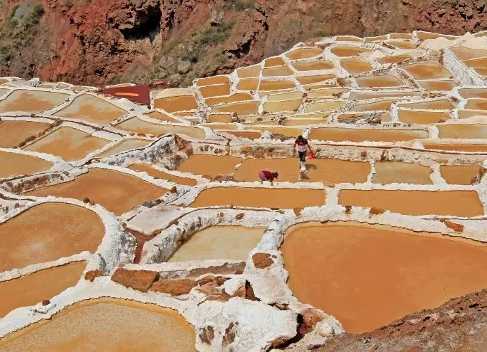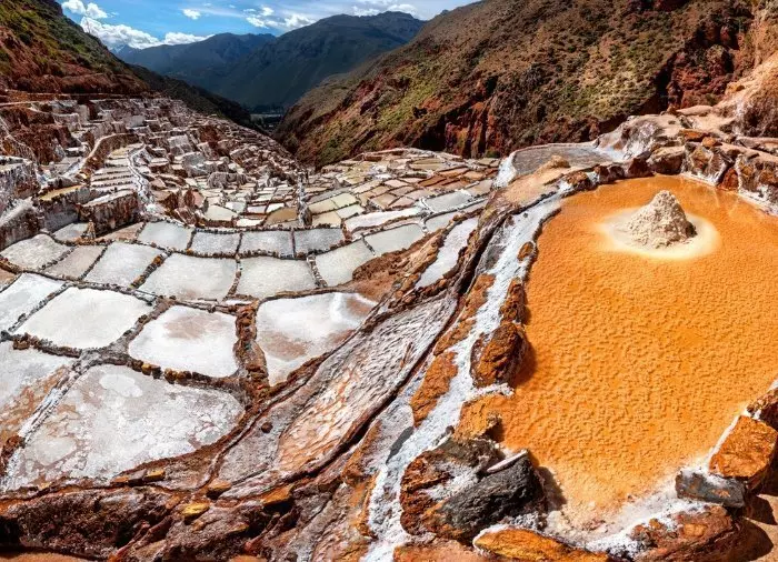 Dit unieke landschap bestaat uit meer dan 3.000 kleine baden die in de berghelling zijn uitgehouwen en die dagelijks worden gevuld met zout water uit een nabijgelegen bron. Wanneer het water verdampt, laat het een laag puur zout achter, dat eerst wordt geoogst en vervolgens door de lokale bevolking wordt verkocht. De zoutmijnen worden al eeuwenlang gebruikt en dateren helemaal uit de pre-Incatijden. Naast het feit dat het een belangrijke bron van inkomsten is voor de lokale bevolking, is het ook een indrukwekkend gezicht om te zien.