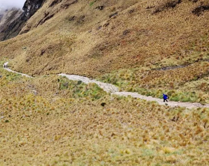 Vandaag is de zwaarste dag van de trektocht! Je begint met een wandeling langs Llulluchapampa, door een gebied met een weelderig nevelwoud. Dan begint er een steile klim naar de 4.200 meter hoge Warmiwañusqa Pass, het hoogste punt op de trektocht. De naam van de pas is een Quechua-woord dat “De pas van de dode vrouw” betekent en verwijst naar de rotsformaties bij de pas. Bovenaan kun je wat welverdiende rust nemen terwijl je geniet van het uitzicht op de met sneeuw bedekte bergen en de Inca Trail.