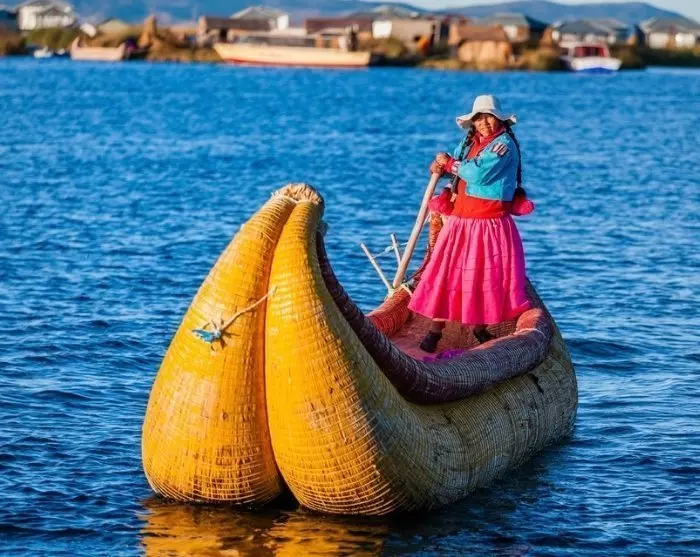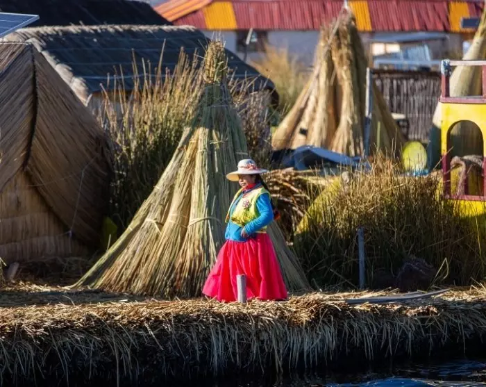 Je vaart eerst uit de haven naar de drijvende rieteilanden, Islas Uros, die nog steeds worden bewoond door de Uros. De Uros gebruiken de gratis bouwmaterialen van het meer, de sterke totorarieten, om eilanden, huizen en boten te bouwen. Ondanks dat de eilanden een beetje commercieel zijn geworden, is het nog steeds fascinerend om meer te weten te komen over de cultuur en oude tradities van de Uros en niet in de laatste plaats om hun indrukwekkende vakmanschap te zien.