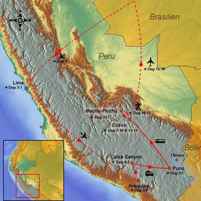 Afstand: Chivay – Cruz del Condor retour + Chivay – Puno: Ongeveer 385 km