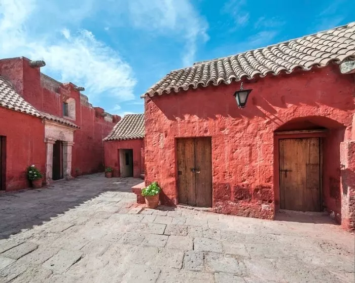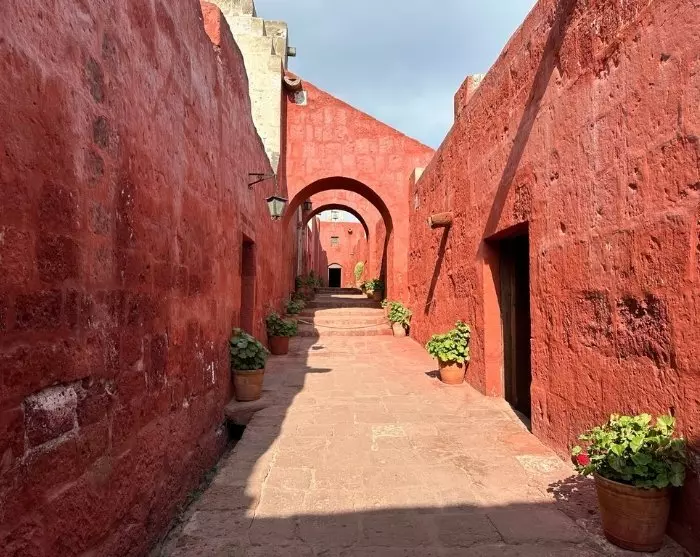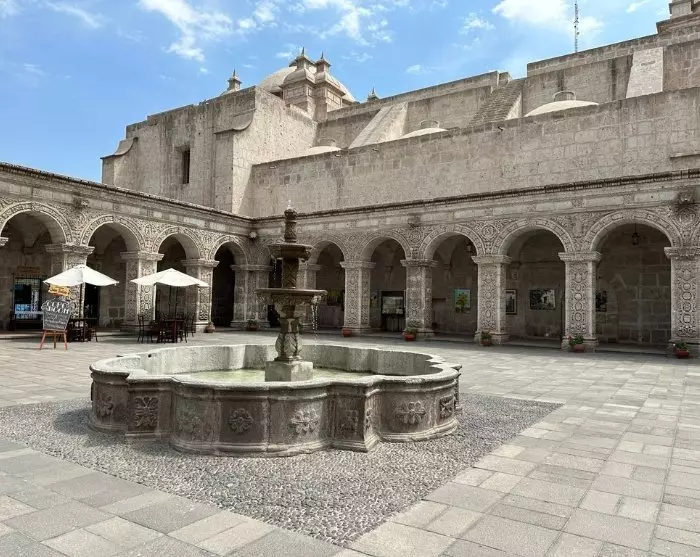 Vervolgens bezoek je Arequipa’s grootste bezienswaardigheid, het Santa Catalina-klooster, dat ooit meer dan 400 nonnen huisvestte. Santa Catalina werd in 1580 gesticht door een rijke weduwe met de naam Maria de Guzmán. Het was voornamelijk gericht op de hogere klassen, voor wie het in de koloniale tijd gebruikelijk was dat het tweede kind van het gezin de kerk diende. De meisjes werden op driejarige leeftijd naar het klooster gebracht en kwamen nooit meer buiten de muren.