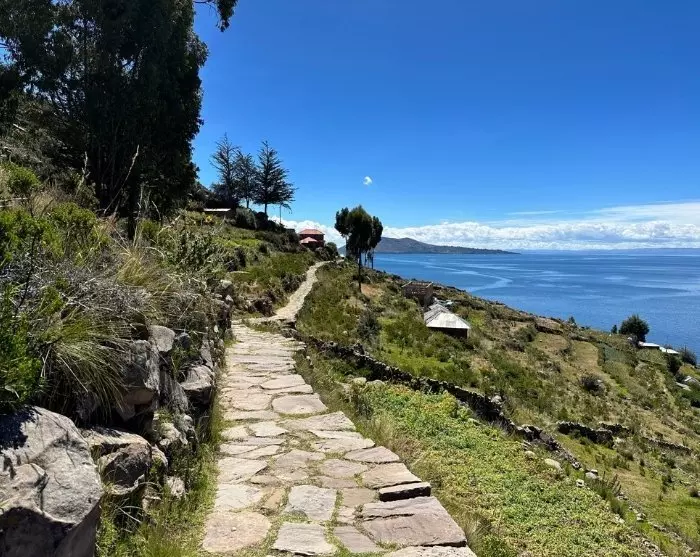 Je zult genieten van een lunch op het prachtige heuvelachtige eiland, en daarna zal je gids je meenemen op een wandeling naar het hoogste punt van het eiland, waarvandaan je een adembenemend uitzicht hebt op het meer van Titicaca, met de hoge bergen op de achtergrond.