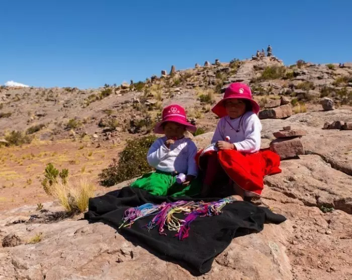 Vervolgens vaar je naar het vredige eiland Taquile, dat vooral bekend staat om zijn kleurrijke ambachten en zijn “breiende mannen”. Hier op het eiland zijn het de mannen die breien – en ze zijn er goed in ook! Het patroon op de hoed van een man, een chullo genaamd, toont niet alleen zijn creativiteit, maar ook zijn burgerlijke status. Het is de taak van vrouwen om het garen te spinnen en te weven. De vrouwen weven de prachtige riemen voor de kostuums van de mannen.