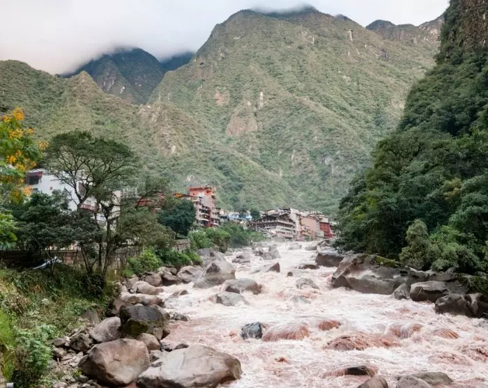 Na de lunch in Lucmabamba word je opgehaald met een auto die je naar de rivier de Urubamba en de waterkrachtcentrale brengt, waarvandaan je de trein naar de stad Aguas Calientes neemt. De reistijd is ongeveer 2 uur.