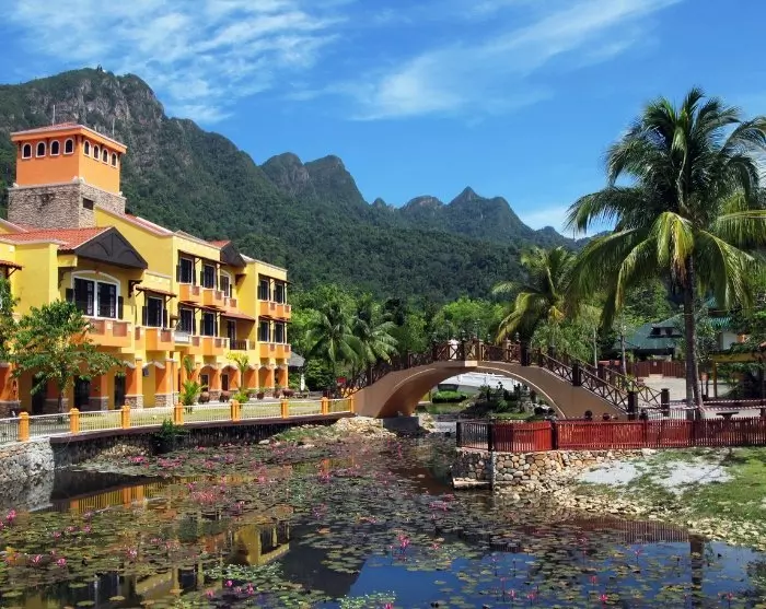 Als u toch nog zin heeft om te verkennen, kunt u naar het Oriental Village wandelen, een themapark gestileerd als een Aziatisch dorp met kleurrijke gebouwen, winkels, restaurants en diverse activiteiten. Het Oriental Village is ook het beginpunt voor de kabelbaan van Langkawi, die u naar de top van Mount Mat Cincang brengt, waar u over de beroemde Langkawi Sky Bridge kunt lopen, met spectaculaire uitzichten over het eiland en de Andamanse Zee.