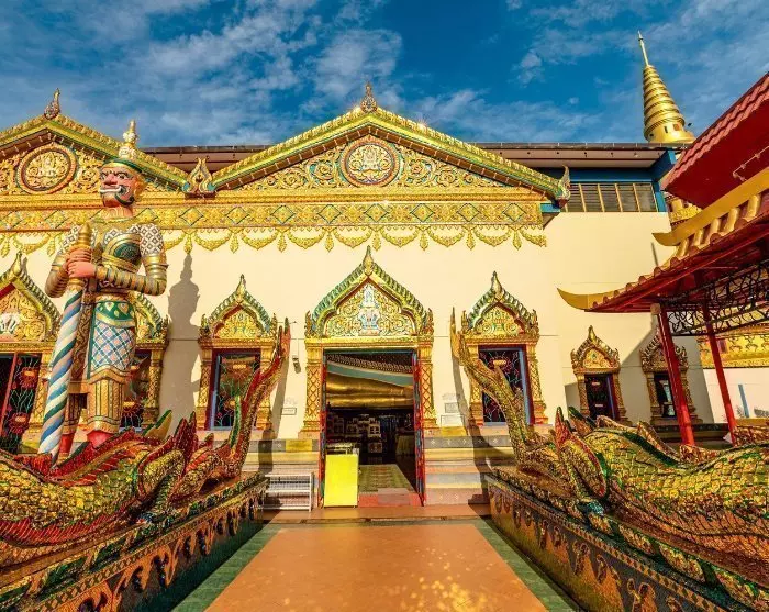 Bezoek ten slotte de Thaise tempel Wat Chayamangkalaram, opgericht in 1845. De tempel is beroemd om zijn kleurrijke decoraties en huisvest een van de grootste liggende Boeddhabeelden ter wereld, dat maar liefst 33 meter meet. Naast deze indrukwekkende Boeddha kunt u ook andere prachtige Boeddhabeelden bewonderen en schitterende muurschilderingen die scènes uit het leven van Boeddha uitbeelden.