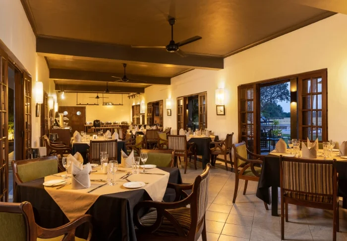 Uw halfpensionmaaltijden worden geserveerd in het hoofdrestaurant, waar een warme en ontspannen sfeer hangt. U kunt hier genieten van een gevarieerd buffet met zowel Sri Lankaanse specialiteiten als internationale gerechten. Wanneer de avond valt, sluit u de dag in stijl af met een potje kaarten of een kleurrijke cocktail onder de sterrenhemel, terwijl het zachte geluid van de natuur langzaam de overhand neemt.