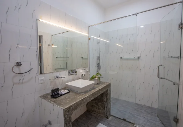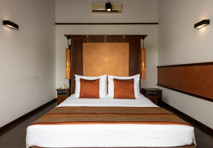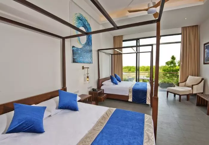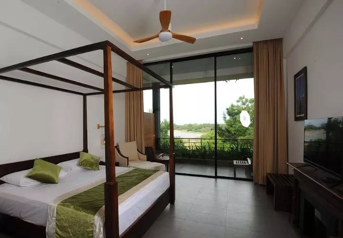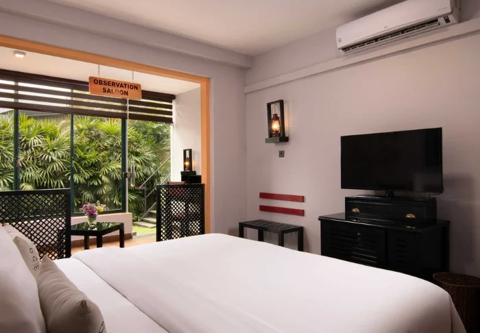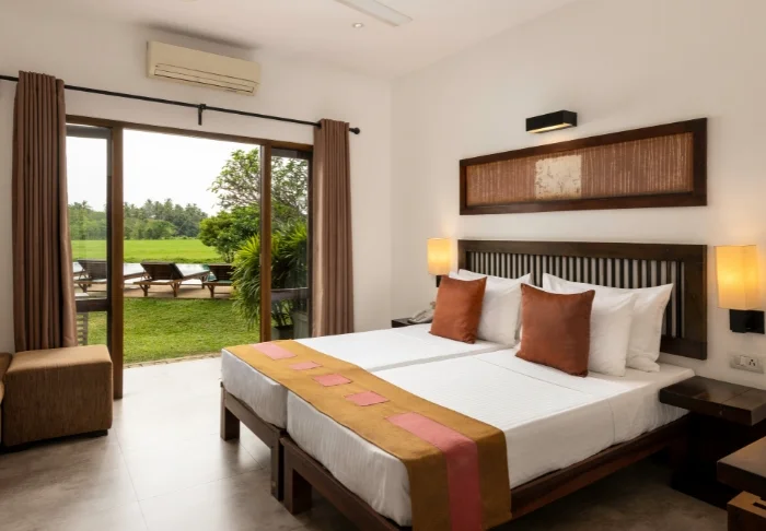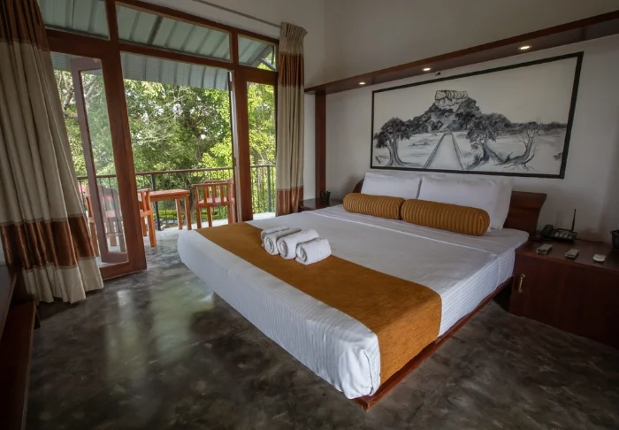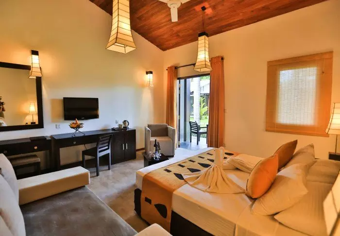 U verblijft in een Deluxe Kamer, ingericht in een eigentijdse, minimalistische stijl waarin lichte tinten en Sri Lankaanse accenten zorgen voor een subtiele balans tussen eenvoud en warmte. U beschikt over airconditioning, wifi, satelliet-tv, een kluisje, schrijftafel, zithoek, telefoon en minibar. De badkamer is voorzien van zowel een bad als een douche, met daarnaast gratis toiletartikelen. Ontspan op uw eigen balkon en geniet van de rust in de tuin, misschien met een goed boek bij de hand.