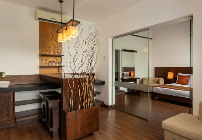 Het design van het hotel is geïnspireerd op de Japanse minimalistische stijl, wat vooral goed te zien is in de Deluxe Room waar u zult verblijven. De kamer is stijlvol ingericht in rustgevende tinten en tot in de kleinste details afgewerkt met natuurlijke materialen en prachtig houtwerk. Dit zorgt voor een verfijnde, maar ook warme sfeer. U beschikt over onder andere airconditioning, wifi, plafondventilator, minibar, kluisje, koffie- en theefaciliteiten en een TV. De badkamer beschikt over een inloopdouche, badjas en slippers en een selectie aan toiletartikelen. Geniet ‘s ochtends op uw eigen balkon of terras van een kopje Ceylon-thee terwijl u het weidse uitzicht over de omgeving in u opneemt.