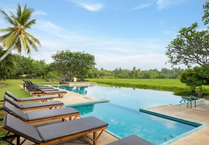 De twee zwembadzones van Ekho Surf vormen een prachtig geheel met de uitgestrekte zandstranden van Bentota. Het ene zwembad ligt direct aan de kustlijn, terwijl het andere zich er elegant op aansluit, elk met z’n eigen unieke sfeer. Hier strekt u zich heerlijk uit op een comfortabele ligstoel, neemt u een verfrissende duik of geniet u simpelweg van een koel drankje terwijl u uitkijkt over zee.