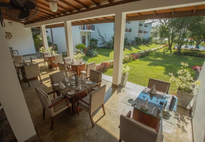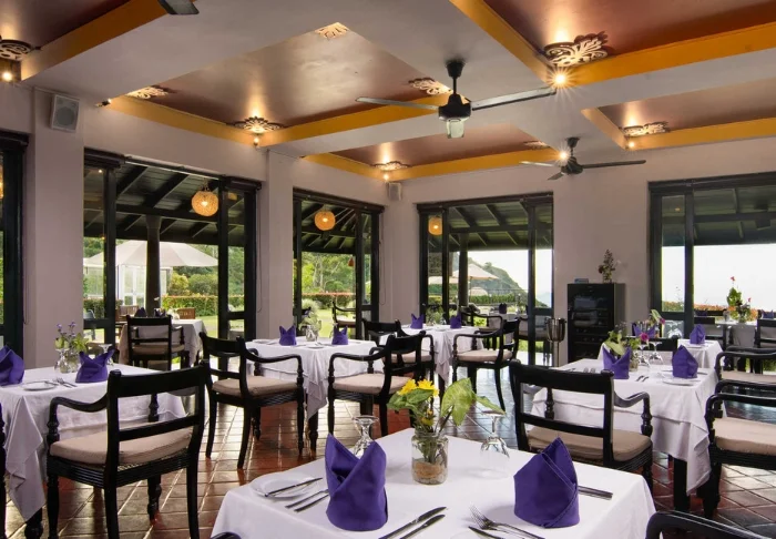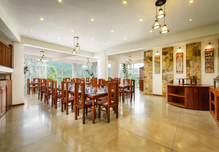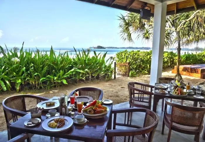 Het restaurant van het hotel is ‘s ochtends, ‘s middags en ‘s avonds geopend en serveert zowel westerse als authentieke Sri Lankaanse gerechten.