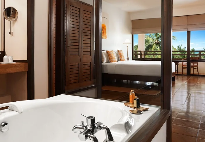 Standaard verblijft u in een Luxury Room, waar Sri Lankaanse accenten zorgen voor een warme, uitnodigende sfeer. Vanaf uw eigen balkon of terras geniet u van een schilderachtig uitzicht op de weelderige hoteltuinen of de betoverende Indische Oceaan. Binnen vindt u volop ruimte en alle moderne comfort, waaronder airconditioning, wifi, een kluisje, minibar, koffie- en theefaciliteiten en een TV. De stijlvolle badkamer is voorzien van luxe toiletartikelen, een badjas en een regendouche voor nog meer verwennerij.