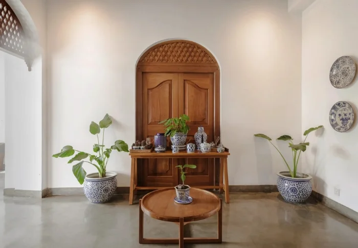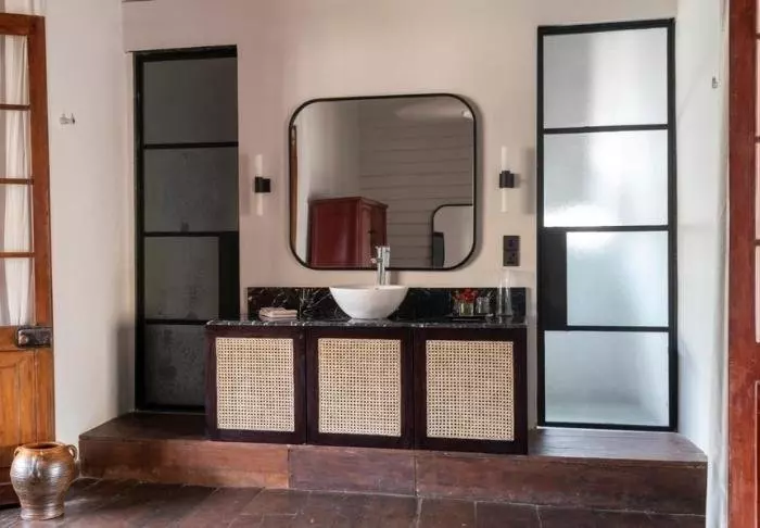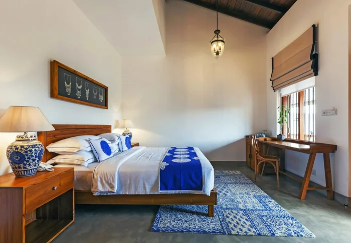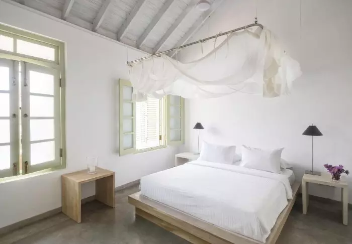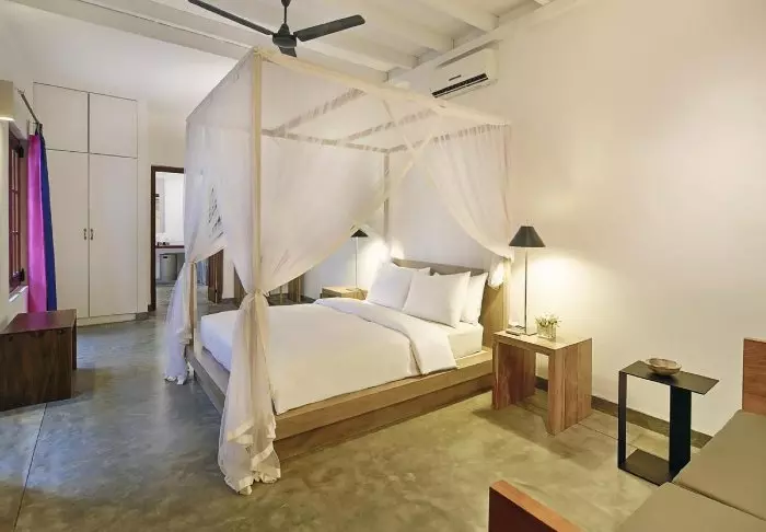 De 16 kamers van het hotel zijn verdeeld over de drie gebouwen, waar minimalistisch design, rustige tinten en antiek uit het koloniale tijdperk prachtig gecombineerd zijn.