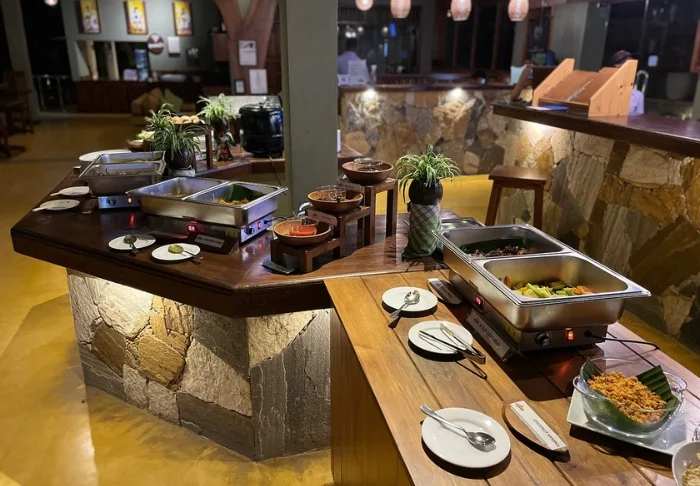 In het restaurant van het resort geniet u van maaltijden die zijn bereid met voornamelijk lokale ingrediënten, terwijl u uitkijkt over de rijstvelden die mee kleuren met het veranderende daglicht. Sluit uw dag ontspannen af met een drankje aan de bar, terwijl de schemer zachtjes over het landschap valt.