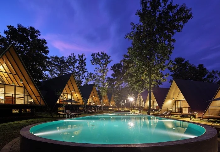 Tijdens uw verblijf slaapt u in een luxe safaritent, waar comfort en intense natuurbeleving naadloos samensmelten. De tent is modern ingericht en heeft grote ramen met uitzicht op het zwembad van het resort en het weelderige groen om u heen. Zo geniet u optimaal van de natuur zonder in te leveren op comfort: de tent beschikt over airconditioning, een minibar, een kluisje en wifi. De open badkamer is voorzien van zowel een regendouche als een ligbad. Stap naar buiten op uw eigen balkon – dé plek om in alle rust te genieten van de stilte en de schoonheid van de natuur.