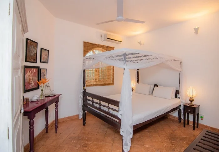 Tijdens uw verblijf logeert u in een Standaardkamer, die een warme en intieme sfeer uitstraalt. De kamer is klassiek ingericht, met donkerhouten meubelen en een sierlijk hemelbed, perfect passend bij het koloniale karakter van het gebouw. U beschikt over airconditioning, wifi, faciliteiten voor het zetten van koffie en thee, gratis mineraalwater en een eigen badkamer met een elegante regendouche en kwalitatief goede toiletartikelen. Op uw privébalkon is het heerlijk ontspannen en geniet u van het gezellige, rustige leven in de smalle straatjes van het fort.