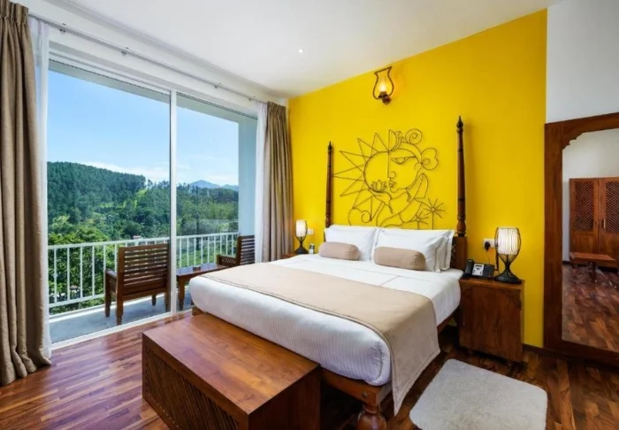 U overnacht in een Standaardkamer, stijlvol ingericht met warme houtaccenten en grote ramen die het groene landschap prachtig omlijsten. Het interieur straalt charme uit, met meubels van natuurlijke materialen en veel aandacht voor de prachtige, omliggende natuur. U beschikt kosteloos over wifi, TV, kluisje, minibar en faciliteiten voor koffie en thee. De badkamer is praktisch ingericht met een inloopdouche en gratis toiletartikelen. Op uw eigen balkon geniet u van het spectaculaire landschap van Ella, waar de bergen en valleien zorgen voor een onvergetelijk uitzicht.