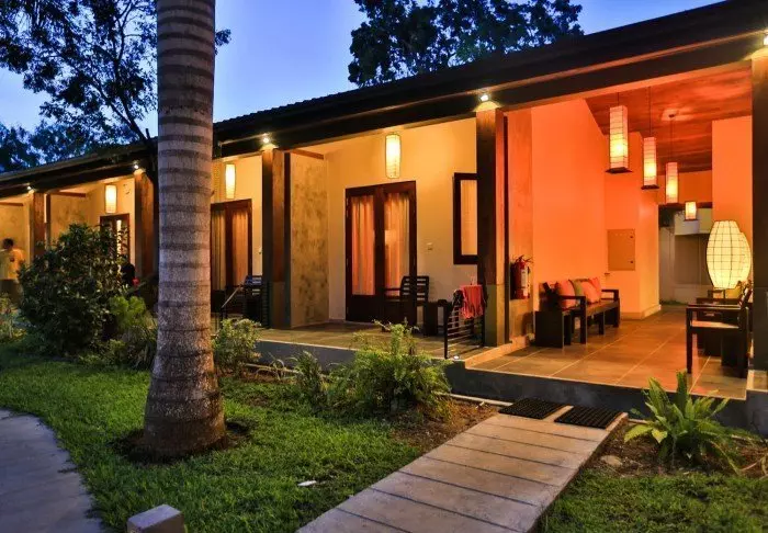 Het resort heeft in totaal 55 kamers van minimaal 52 m2. Alle kamers hebben een eigen veranda, die uitkijkt op de mooie, aangelegde tuinen en vanwaar u verschillende trekvogels kunt zien en vogels die alleen hier voorkomen. De kamers zijn mooi ingericht met donkere houten meubels, prachtig gekleurde stoffen en leuke papieren lantaarns. Alle kamers hebben airconditioning, plafondventilator, wifi, tv, telefoon, kluisje, zithoek en bureau. Er is ook een waterkoker, zodat u zelf een kopje thee of koffie kunt zetten en daarvan kunt genieten op uw veranda. De badkamer heeft een regendouche, een föhn en gratis toiletartikelen.