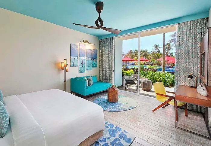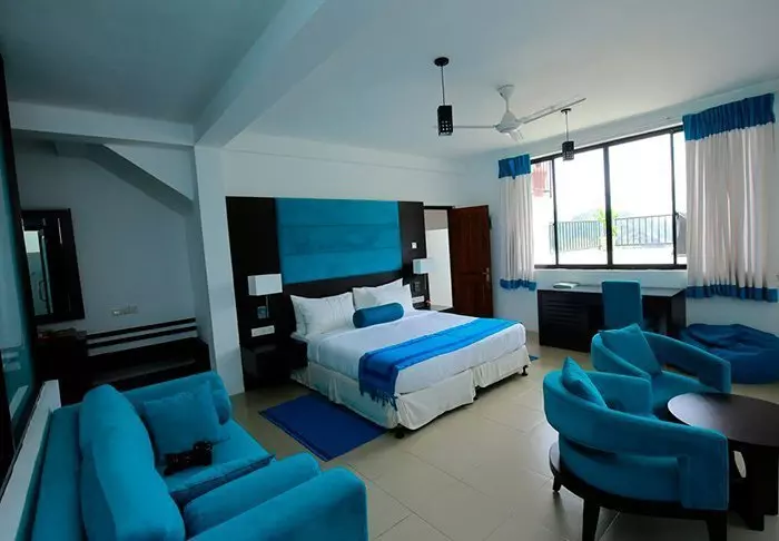 U verblijft standaard in een Deluxe kamer met zeezicht, zodat u volop kunt genieten van de exotische omgeving. De inrichting is modern en licht, met rustgevende kleuren en een azuurblauwe vloer die prachtig aansluit bij de tinten van de zee. Elke kamer is comfortabel uitgerust met wifi, airconditioning, TV, minibar, koffie- en theefaciliteiten en een kluisje. De badkamer beschikt over een badjas, toiletartikelen, een ligbad en een aparte douche. Op uw eigen balkon of terras kunt u heerlijk ontspannen en genieten van het weidse uitzicht over de Indische Oceaan.