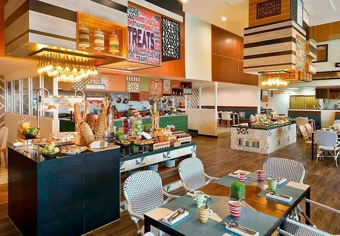 Het hotel heeft maar liefst drie restaurants en bars. Restaurant Fusion serveert een voortreffelijk ontbijtbuffet en Aziatische en internationale gerechten met verse en zorgvuldig geselecteerde ingrediënten. Op de top van het hotel ligt de gezellige Bommu Rooftop Bar, waar u in de comfortabele meubels van het dakterras kunt genieten van cocktails, drankjes en lichte snacks tijdens zonsondergang. Vanaf hier is er ook een fenomenaal panoramisch uitzicht op de baai, het strand en de zwembaden van het hotel. Tussen het strand en het grote zwembad ligt de Shoreline Beach Club, waar u midden op de dag uw lekkere trek en dorst kunt stillen.
