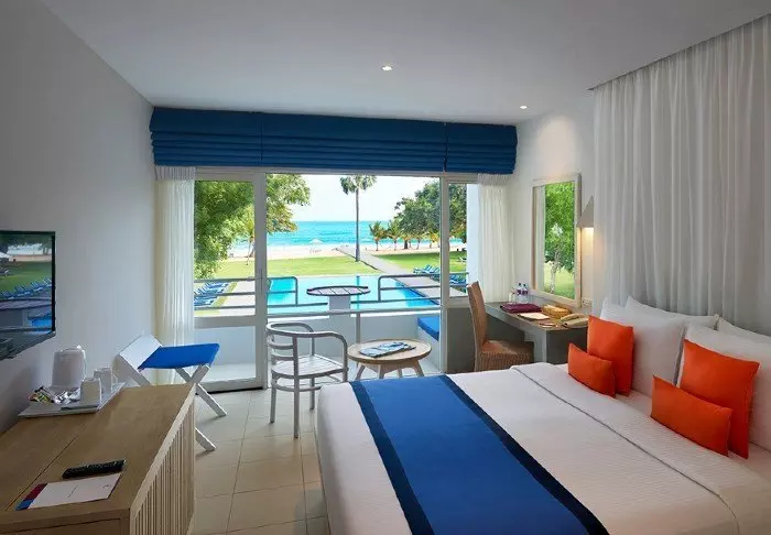 Het mooie hotel, Trinco Blu by Cinnamon, ligt aan het mooie zandstrand van Uppuveli, waar u kunt zonnebaden, lange wandelingen kunt maken, en een verfrissende duik kunt nemen in de rustige golven.