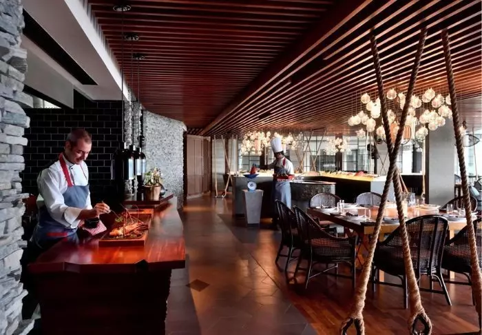 Het ontbijt in het hotel bestaat meestal uit vers fruit, sap, smoothie, zelfgebakken brood, eieren en kaas, terwijl de lunchgerechten variëren van verse salades, gourmet burgers, sandwiches, sashimi en taco’s. Het diner is overdadig met specialiteiten zoals gegrilde kreeft, tonijn en garnalen, soepen, tajine van lam, mezze, mediterraan geïnspireerde gerechten en, natuurlijk, traditionele Sri Lankaanse ‘rijst en curry’ gerechten.