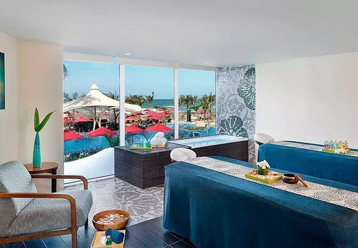 Het zwembad van het hotel loopt naadloos over in het strand, en vormt zo het gezellige middelpunt. U kunt hier een verfrissende duik nemen, ontspannen op een ligstoel met een koud drankje, of direct het zachte, gouden zand op lopen. Zin in wat actie? Leef u uit in de compleet uitgeruste fitnessruimte of doe mee met een potje volleybal. Liever tot rust komen? Bezoek de moderne spa van het hotel, waar een deskundige therapeut voor pure ontspanning zorgt.