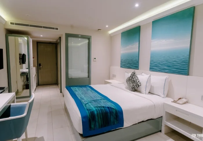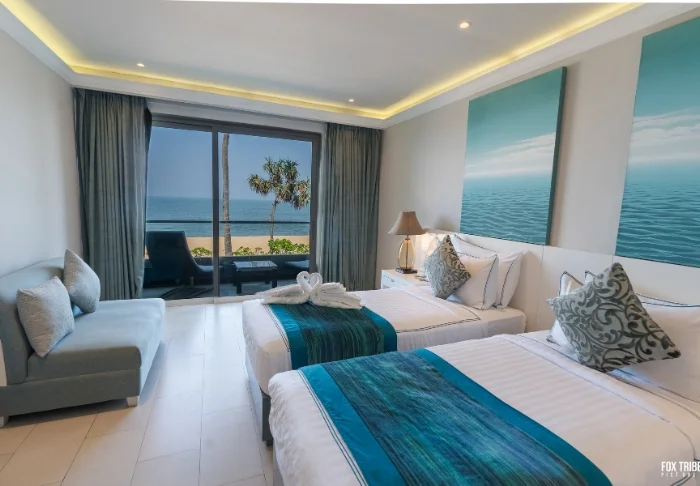Tijdens uw verblijf overnacht u in een Deluxe Kamer, ingericht in een lichte, frisse stijl met kleurrijke accenten. Vanaf hier geniet u van een prachtig uitzicht op zee, zowel vanuit uw kamer als vanaf uw eigen balkon – misschien met een goed boek in de hand. De kamer is voorzien van airconditioning, wifi, een minibar met gratis flessen water, een kluisje, thee- en koffiefaciliteiten en een TV. De badkamer beschikt over kwaliteitsvolle toiletartikelen en een inloopdouche met regendouchekop.