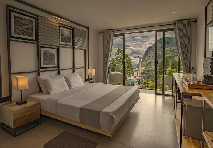 Vanaf hier wandelt u zo naar de gezellige hoofdstraat van het dorp, waar u kunt kiezen uit talloze leuke winkeltjes en fijne eetgelegenheden. Tegelijkertijd geniet u in het hotel van een oase van rust en een spectaculair uitzicht, met als blikvangers zowel Little Adam’s Peak als Ella Rock.