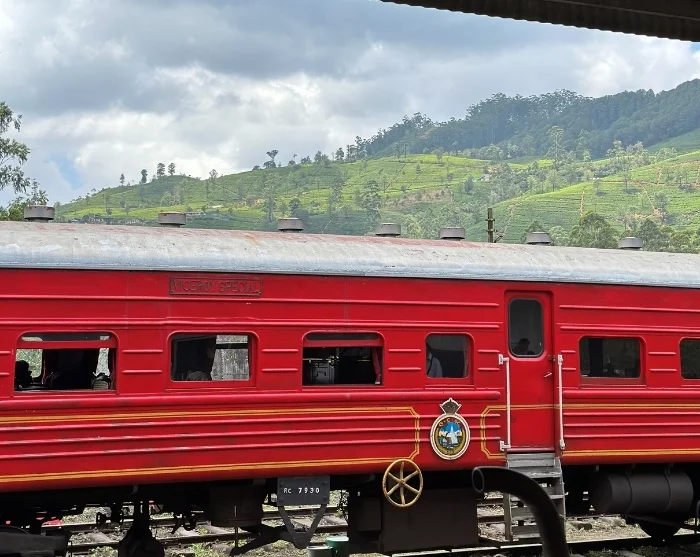 Bij aankomst op Nanu Oya stap je op de klassieke trein die zich rustig een weg baant door de groene hooglanden van Sri Lanka. Neem plaats en geniet van een paar ontspannen uurtjes, terwijl het landschap aan je voorbijtrekt: glooiende bochten, felgroene theeplantages en kleine dorpjes waar vrolijke lokale kinderen zwaaien als je langskomt. Het is een belevenis die kinderen én volwassenen nog lang zullen herinneren – misschien wel één van de mooiste momenten van de hele reis.