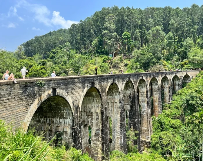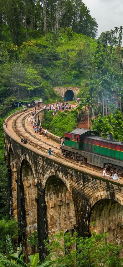 Onderweg wandelt u over smalle paden tussen bananenpalmen en theestruiken, waar u misschien een praatje maakt met kinderen die opgroeien tussen de vele theeplantages in deze streek. Aan het einde van de wandeling wacht de Nine Arch Railway Bridge op u – bijna 30 meter hoog torent dit architectonische meesterwerk majestueus boven het weelderige landschap uit.
