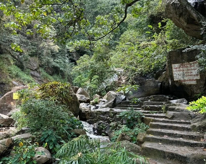 Uw eerste stop is Ravana Falls, een van de breedste en meest indrukwekkende watervallen van Sri Lanka. Hier stort het water met veel kracht 25 meter omlaag tegen de rotsen, zo krachtig dat u de nevel bijna kunt voelen. Volgens de legende woonde de demonenkoning Ravana hier en verborg hij prinses Sitha in een grot achter de waterval—een betoverend verhaal dat de fantasie prikkelt terwijl u kijkt naar het neerstortende water.