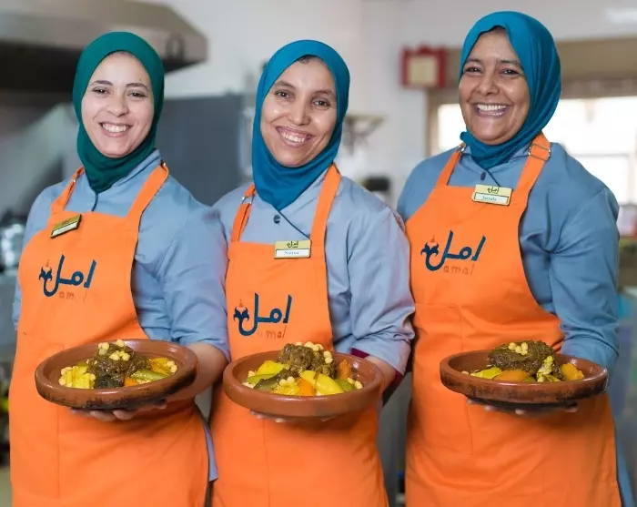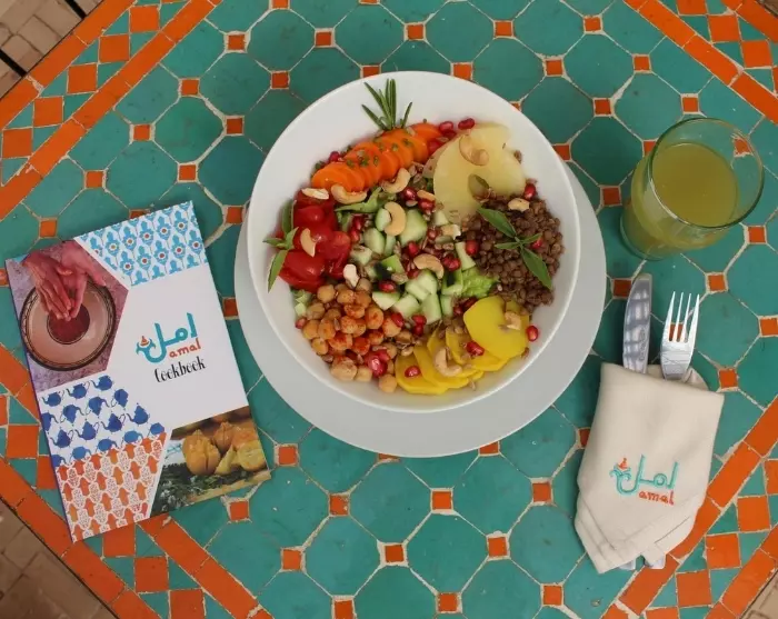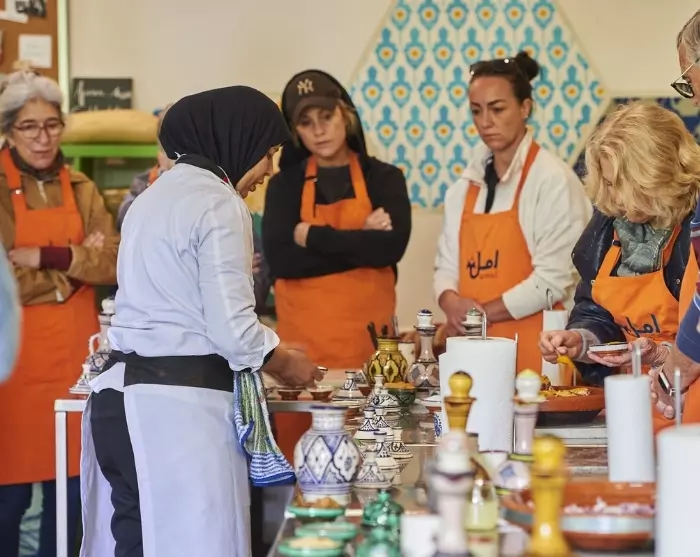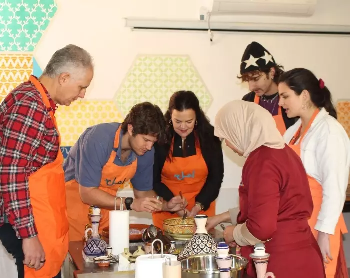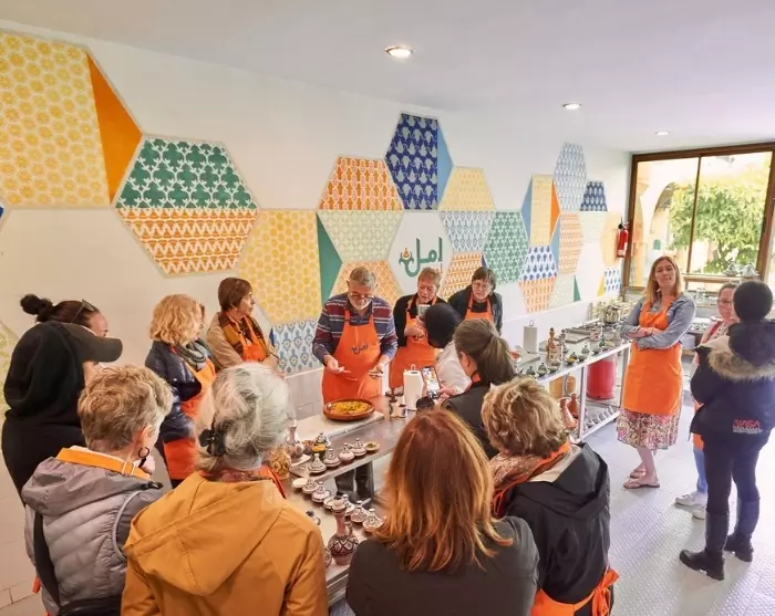 Daarnaast organiseert Amal kookworkshops, waarbij toeristen en lokale bewoners deelnemen aan authentieke Marokkaanse kookervaringen die zowel inkomsten genereren als het sociale doel van het project onder de aandacht brengen. De studenten geven les op de kookschool onder begeleiding van een bevoegde docent. Bij sommige van onze reizen neemt u deel aan een kookworkshop en leert u een traditionele Marokkaanse lunch bereiden.