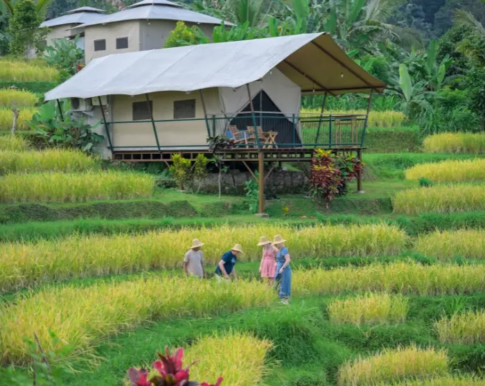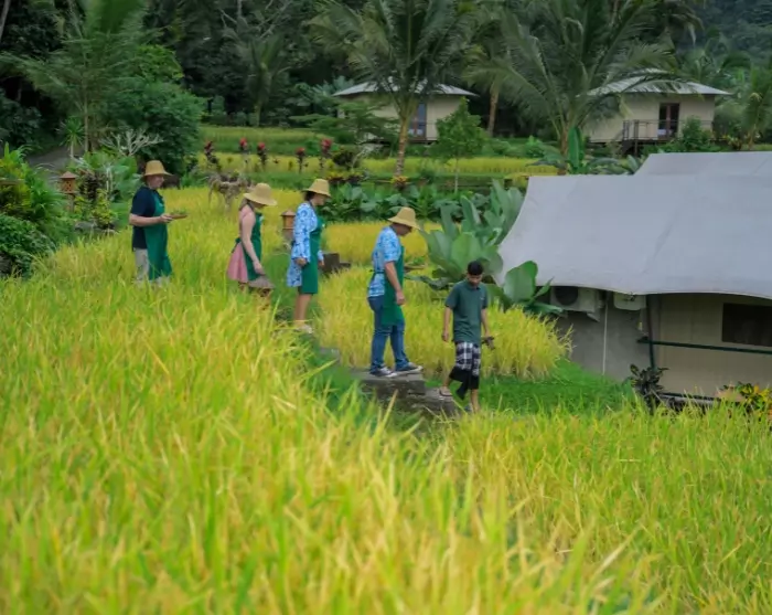 De rijstterrassen van Manggis hebben het dorpsleven al generaties lang gedragen. Tegenwoordig staan ze ook centraal in de omschakeling naar biologische landbouw die de bodem beschermt, waterbronnen veiligstelt en een gezond landschap voor de toekomst bevordert. Met steun van Kaura Bali werken lokale boeren nu volledig zonder chemische middelen. Als gast kunt u de velden in om te zien – en zelfs zelf te proberen – hoe rijst wordt geplant, compost wordt gekeerd en groenten worden geoogst.