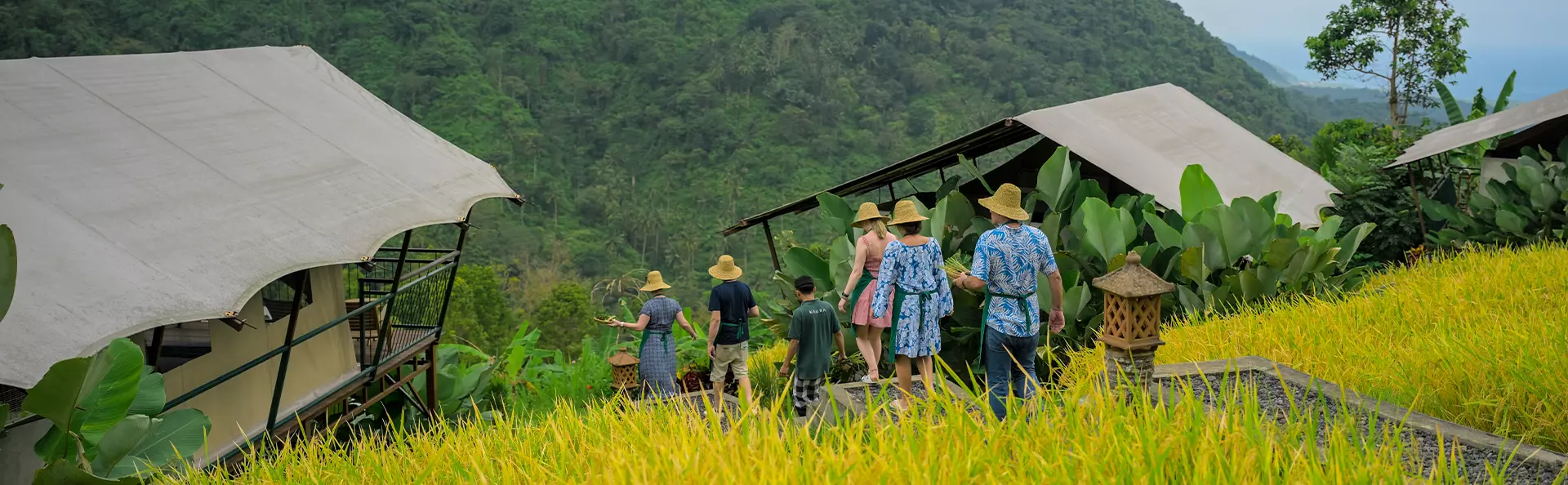 Kaura Bali ligt op glooiende heuvels met uitzicht op rijstterrassen, jungle en de Indische Oceaan. Hier is de natuur niet alleen een prachtig decor; zij is een onmisbaar onderdeel van het dagelijks leven van de families in Manggis. Via Kaura Bali heeft het dorp een nieuwe manier gevonden om natuur én gemeenschap op eigen voorwaarden te versterken.
