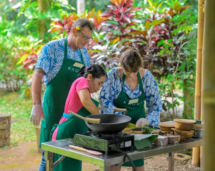 Kaura Bali is ook een plek waar lokale tradities levend worden gehouden. Wevers laten zien hoe natuurlijke vezels veranderen in prachtig handwerk, koks delen seizoensrecepten en de vrouwen uit het dorp leren hun methoden voor het maken van kokosolie en verzorgingsproducten. Dat levert inkomen en trots op en zorgt ervoor dat kennis wordt doorgegeven aan de volgende generatie.