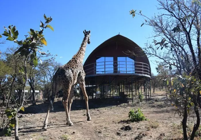 U bevindt zich hier tevens op bijna gelijke hoogte met de giraffen die vaak tussen de tenten kuieren.