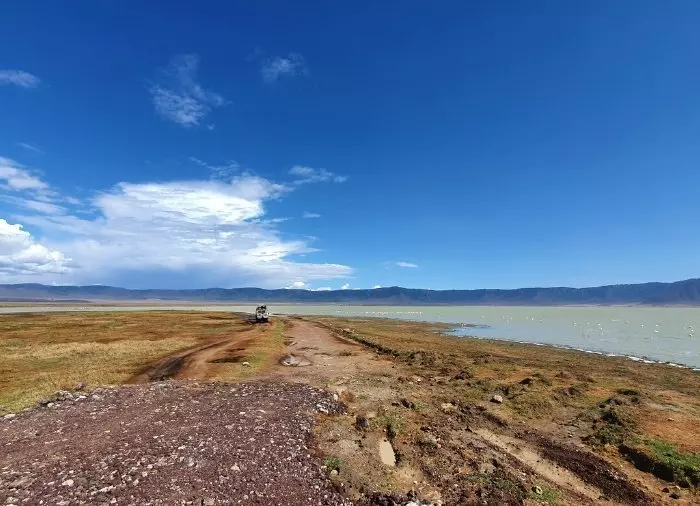 Olifanten, zebra’s, gnoes, buffels, leeuwen, flamingo’s, nijlpaarden, antilopen, ooievaars, hyena’s, jakhalzen – en de bedreigde zwarte neushoorn. De kraterbodem zelf is vlak, 260 km2 groot en de kraterwand torent de 600 meter boven u uit. Het voelt alsof je op de bodem van de wereld bent, maar in feite ligt de kraterbodem 2000 meter boven zeeniveau.
