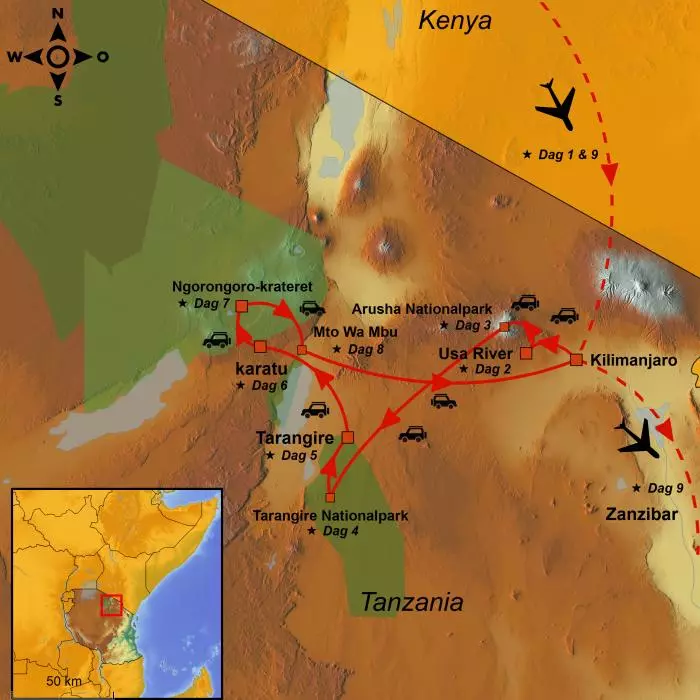 Na deze boeiende belevenis wordt u naar het vliegveld gebracht, vanwaar uw terugreis begint – tenzij u ervoor kiest om de reis te verlengen met een verblijf op het exotische Zanzibar.