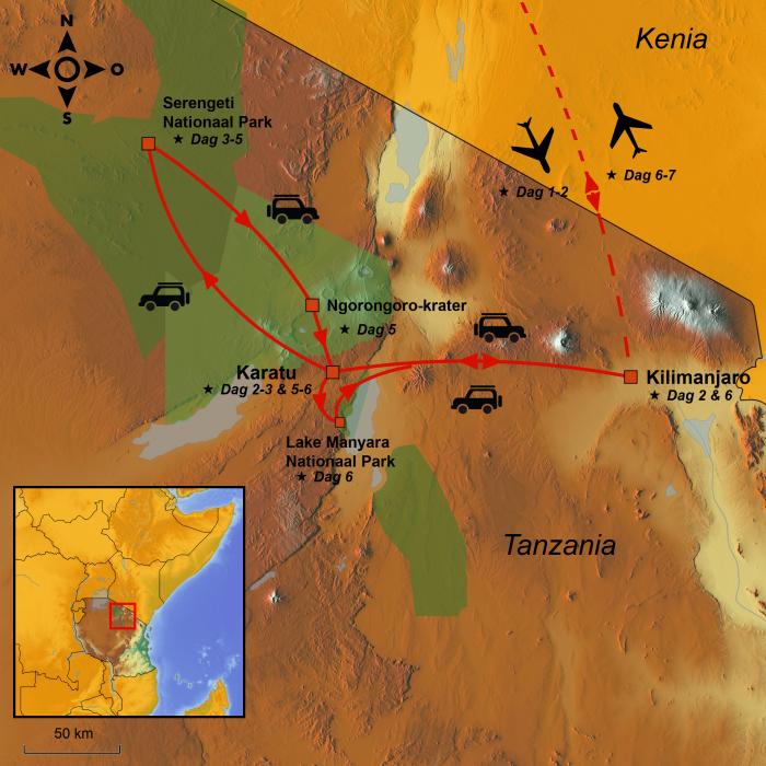 Deze reis laat u de belangrijkste hoogtepunten van een safari in Tanzania beleven: Safari in de Serengeti, de Ngorongoro-krater, Ngorongoro Conservation Area en nationaal park Lake Manyara. U kunt alle iconische dieren van Afrika tijdens een korte en bondige safarireis zien. U overnacht in hotels, maar ook in een tentenkamp waar u heel dicht bij de indrukwekkende Afrikaanse natuur komt. De tenten zijn voorzien van echte bedden en eigen bad en toilet. Het wordt een hoogtepunt van uw reis.