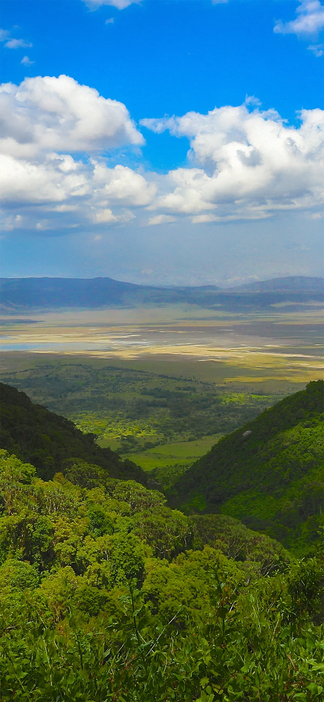 Vanaf de kraterrand kronkelt de weg 600 meter naar beneden aan de binnenkant van de gedoofde vulkaankrater tot aan de 260 km² grote kraterbodem. In de weelderige krater ziet u savanne, moerassen, meren, kleine riviertjes, acaciabossen en een zoutwatermeer. Er leven tussen de 25.000 en 30.000 dieren in de krater. De ervaring op de bodem van deze krater wordt vaak vergeleken met “een rit door Jurassic Park”, omdat er overal dieren zijn. Er zijn in dit relatief kleine gebied meerdere groepen leeuwen, grote kuddes buffels, flamingo’s, ja zelfs de zwarte neushoorn heeft zijn weg naar de krater gevonden. Het enige dier dat u hier niet zult zien is de giraffe, dit dier is nooit vanuit de Serengeti naar de Ngorongoro-krater getrokken.