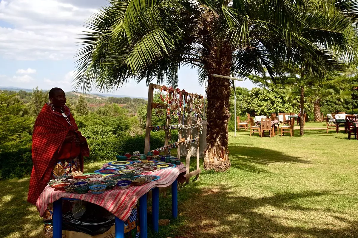 In het Highview Hotel wordt u meestal ontvangen door Masai in hun traditionele kleding. Het hotel ligt op een heuveltop en heeft een panoramisch uitzicht over mooie valleien met kleine akkers en koffieplantages. De boeren proberen met allerlei constructies te voorkomen dat olifanten en andere dieren het gewas vernielen, bijvoorbeeld door de akkers met chilipeper-planten te omheinen.