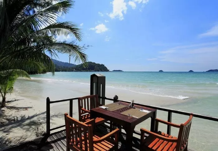 Het strand ligt op een steenworp afstand en vanaf hier kunt u de vele langstaartboten zien die tussen Aonang en Railey heen en weer varen. Vanaf het strand is er een mooi uitzicht over de Andamanse Zee en de steile kalksteenrotsen.