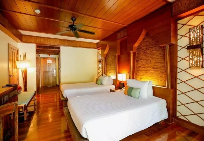 De kamers zijn ook ingericht in Thaise stijl met prachtig houtsnijwerk en prachtige patronen op kussens en dekens. De kamers hebben tv, koffie- en theefaciliteiten, airconditioning, kluisje, minibar, föhn en een paraplu voor het geval dat er een tropische stortbui komt. Alle kamers hebben een eigen balkon.