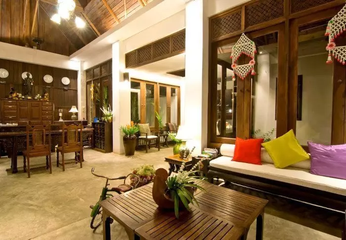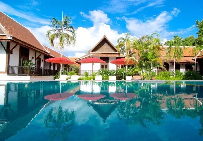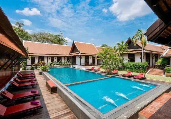 Het resort is gebouwd en ingericht met prachtig, donker hout en straalt Noord-Thaise charme uit.