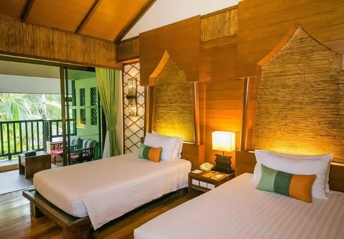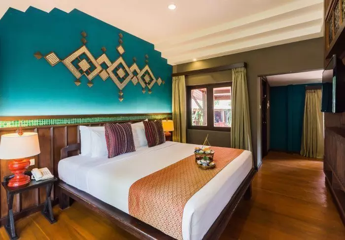 Het resort is gebouwd als een traditioneel dorp en straalt een gezellige sfeer uit. Hier zijn in totaal 62 kamers ingericht in klassieke Thaise stijl met donkere teakhouten meubels en kleurrijke muren en stoffen. Alle kamers zijn voorzien van wifi, airconditioning, minibar, flesjes mineraalwater, koffie- en theefaciliteiten, tv, telefoon en paraplu. De badkamer is voorzien van een föhn en toiletartikelen. Van het balkon kunt u genieten van het uitzicht op of de tuin of het kanaal.